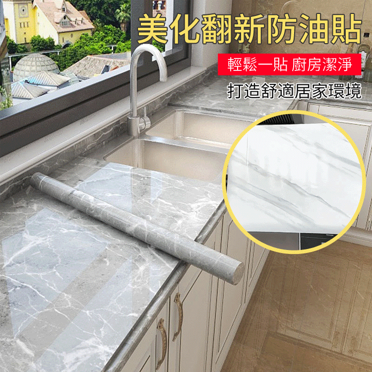 11分鐘前限時搶購 廚房貼紙防水防油大理石家具貼膜自粘牆紙瓷磚灶台桌面櫃子保護膜 - 8卷【1卷僅需149】NT$1199