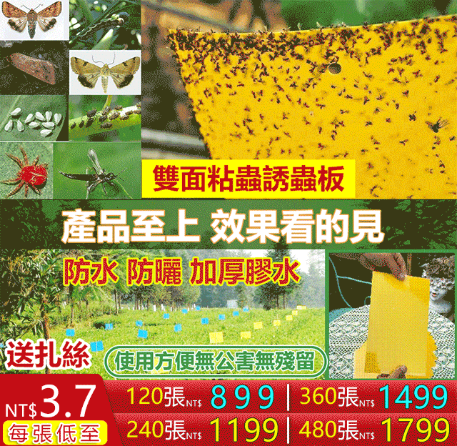 12分鐘前種菜養花不會用打農藥!物理防蟲「雙面粘蟲板」不怕水、不怕曬,粘性超強。花園、果園無需打農藥。室內,院子都可以使用! - 雙面粘蟲板 超值價 360張裝入僅需 NT$1499