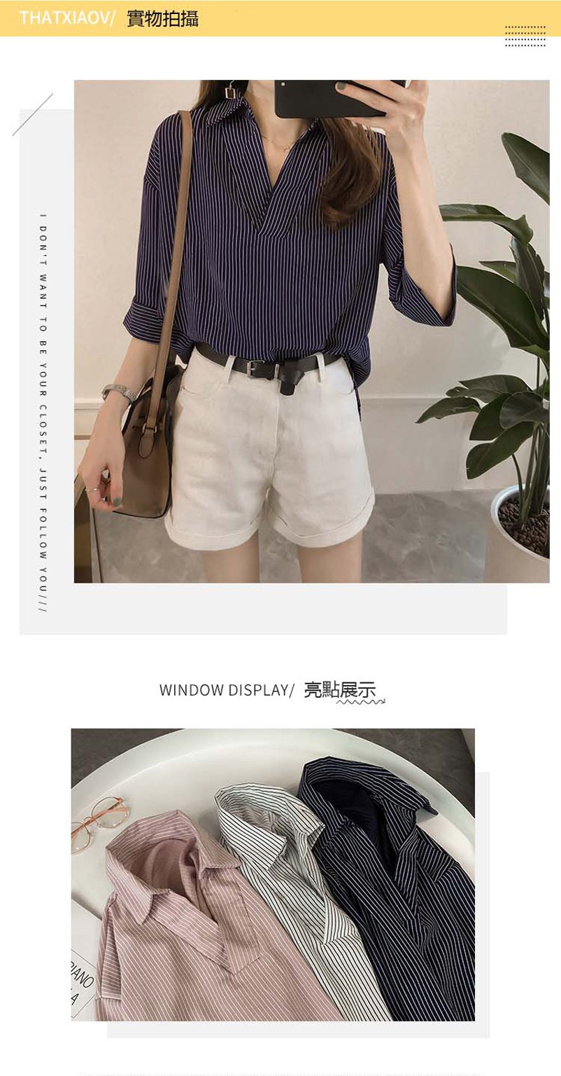 半小時前新品上市,勁爆特殺!全場大放送,單件低至NT$432,2020新款夏裝中長款韓版寬松顯瘦條紋襯衫女七分袖,廠家直銷,超值優惠,買到賺到!過後漲價! - 【超級氣質條紋襯衫】任選1件 僅需NT$899