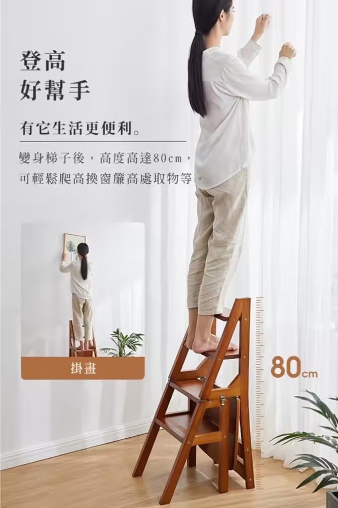 4分鐘前【現貨】二合一折疊梯子椅,木料製作,打磨精緻,可變為簡易小梯子,可幫助拿取高處物品 - 【两層|純實木|翻转收纳】NT$1880